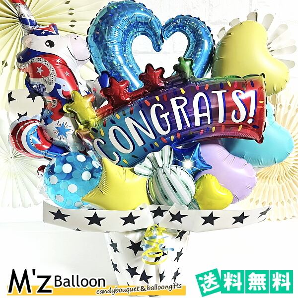 【ブルー×カラフル】ユニコーン バルーンギフト★Lサイズ【エムズバルーン】【mzballoon】バルーン 風船 お祝い 開店祝い 発表会 周年 記念日 誕生日 ウェディング 卓上バルーン バルーンアレンジメント フラワーバルーン